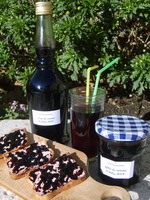Sorbet à la violette odorante sur coulis de fraises