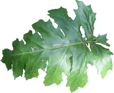 Caractéristiques de la Plante : Érigée, non ramifiée, à pousse basale lignifiée. Caractéristiques de la Feuille : persistant, coriace, molle, luisantes, 6 Lobes dentés en échancrure, Lobes terminaux plus grands, Pédoncule et nervure de la face inférieure velue, Face supérieure vert foncé. Limbe : simple. Attache : pétiolée. Possition : basale. Feuille