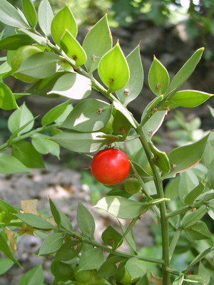 Autres noms communs : Buis piquant, Fragon piquant, Fragonnette, Houx frelon, Petit houx, Épine de rat, Fragon épineux.