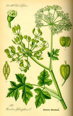 Autres noms communs : Branc-ursine, Corne de chèvre, Cuques, Fausse Acanthe, Frênelle, Grande berce, Herbe du Diable, Patte d'ours, Patte de loup, Berce sphondyle.