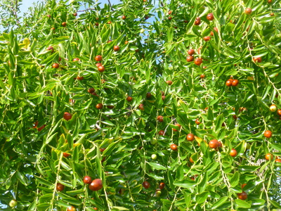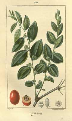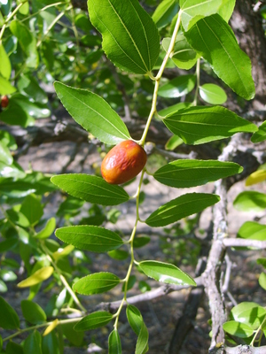 Composition : Fruits (Ziziphus spina-christi) : Eau (65.0 %), Protides (1.5 %), Glucides (32.0 %), Calories (136.0 Kcal), Lipides (1.0 %), Calcium (177.0 mg), Phosphore (135.0 mg), Fer (0.6 mg), Sodium (9.0 mg), Potassium (1910.0 mg), Magnésium (56.3 mg), Vitamine A (70.0 Ul), Vitamine C (10.0 mg), Soufre (94,5 mg), Manganèse (0.4 mg), Zinc (0.8 mg), Cuivre (0.6 mg). Graines (Ziziphus spina-christi) : Protides (29.6 %), Glucides (21.8 %), Lipides (3.9 %), Calcium (154.0 mg), Phosphore (1090.0 mg), Fer (4.4 mg), Sodium (14.1 mg), Potassium (1130.0 mg), Magnésium (301.0 mg), Soufre (1180 mg), Manganèse (3.5 mg), Zinc (9.2 mg), Cuivre (1.6 mg). Feuilles (Ziziphus spina-christi) : Protides (6.8 %), Glucides (25.8 %), Lipides (3.3 %), Calcium (1270.0 mg), Phosphore (85.4 mg), Fer (7.2 mg), Sodium (22.0 mg), Potassium (673.0 mg), Magnésium (169.0 mg), Soufre (195 mg), Manganèse (3.5 mg), Zinc (1.5 mg), Cuivre (0.3 mg).