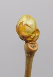 Caractéristiques de la Feuille : Simple, Rouge foncé à pourpre, caduque. Forme du limbe : ovoïde. Possition : alternes. Feuille