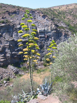 | Utilisation en cuisine : Du coeur de la plante est tiré un « sirop d’agave » aussi appelé « miel de cactus » ou « nectar d'agave » dans les magasins bios. La Tequila est obtenue à partir de l’agave bleu (Agave tequilana). Les fleurs sécrètent un suc, jaunâtre et translucide, qu’on peut lécher après les avoir ouvertes en deux ou en les maintenant tête en bas pour récupérer les goutes tombées. Hampe florale : coupée au printemps dès son apparition pour récupérer le suc ou torréfiées. Sève de la hampe florale (aguamiel) : est mise à fermentée au Mexique pour obtenir une bière faiblement alcoolisée qui était déjà la boisson des dieux pour les Aztèques.