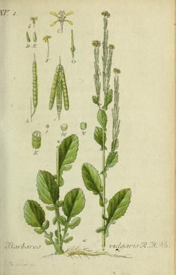 Autres noms scientifiques : Barbarea australis, Barbarea hirsuta, Barbarea iberica, Barbarea kayseri, Barbarea lyrata, Barbarea pseudostricta, Barbarea rivularis, Barbarea silvestris, Barbarea stolonifera, Barbarea taurica, ... Barbarea vulgaris f. rivularis, Barbarea vulgaris f. vulgaris, Barbarea vulgaris proles arcuata, Barbarea vulgaris proles rivularis, Barbarea vulgaris subsp. arcuata, Barbarea vulgaris subsp. arcuata, Barbarea vulgaris subsp. arcuata, Barbarea vulgaris subsp. rivularis, Barbarea vulgaris subsp. silvestris, Barbarea vulgaris subsp. taurica, Barbarea vulgaris subsp. vulgaris, Barbarea vulgaris var. arcuata, Barbarea vulgaris var. brachycarpa, Barbarea vulgaris var. gracilis, Barbarea vulgaris var. longisiliquosa, Barbarea vulgaris var. rivularis, Barbarea x abortiva, Barbarea x gracilis, Campe barbarea, Campe vulgaris, Cheiranthus ibericus, Crucifera arcuata, Crucifera barbarea, Eruca barbarea, Erysimum arcuatum, Erysimum barbarea, Erysimum lucidum, Erysimum lyrifolium, Sisymbrium barbarea, Barbarea arcuata.