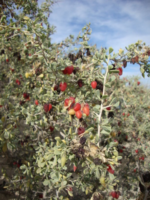 Autres noms communs : Gharqad. Nom scientifique : Nitraria retusa Autres noms scientifiques : Nitraria senegalensis, Nitraria sericea, Peganum retusum., Nitraria tridentata. |