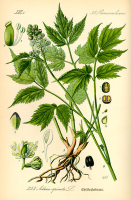 Autres noms communs : Christophorienne, Herbe de Saint-Christophe, Herbe du loup, Raisin de loup, Raisin du diable, Herbe aux poux.