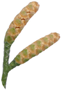 ![]() ![]() ![]() | Bouleau verruqueux | Betula pendula (Bétulacées) | Épi de cymes triflores, |