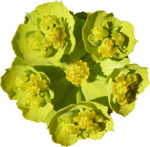 ![]() ![]() ![]() | Buplèvre arbustif | Bupleurum fruticosum (Apiacées (Ombellifères)) | Ombelle d'ombellules, |