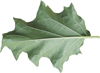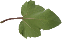 | persistant, coriace, molle, luisantes, 6 Lobes dentés en échancrure, Lobes terminaux plus grands, Pédoncule et nervure de la face inférieure velue, Face supérieure vert foncé. Limbe : simple. Attache : pétiolée. Possition : basale. | |