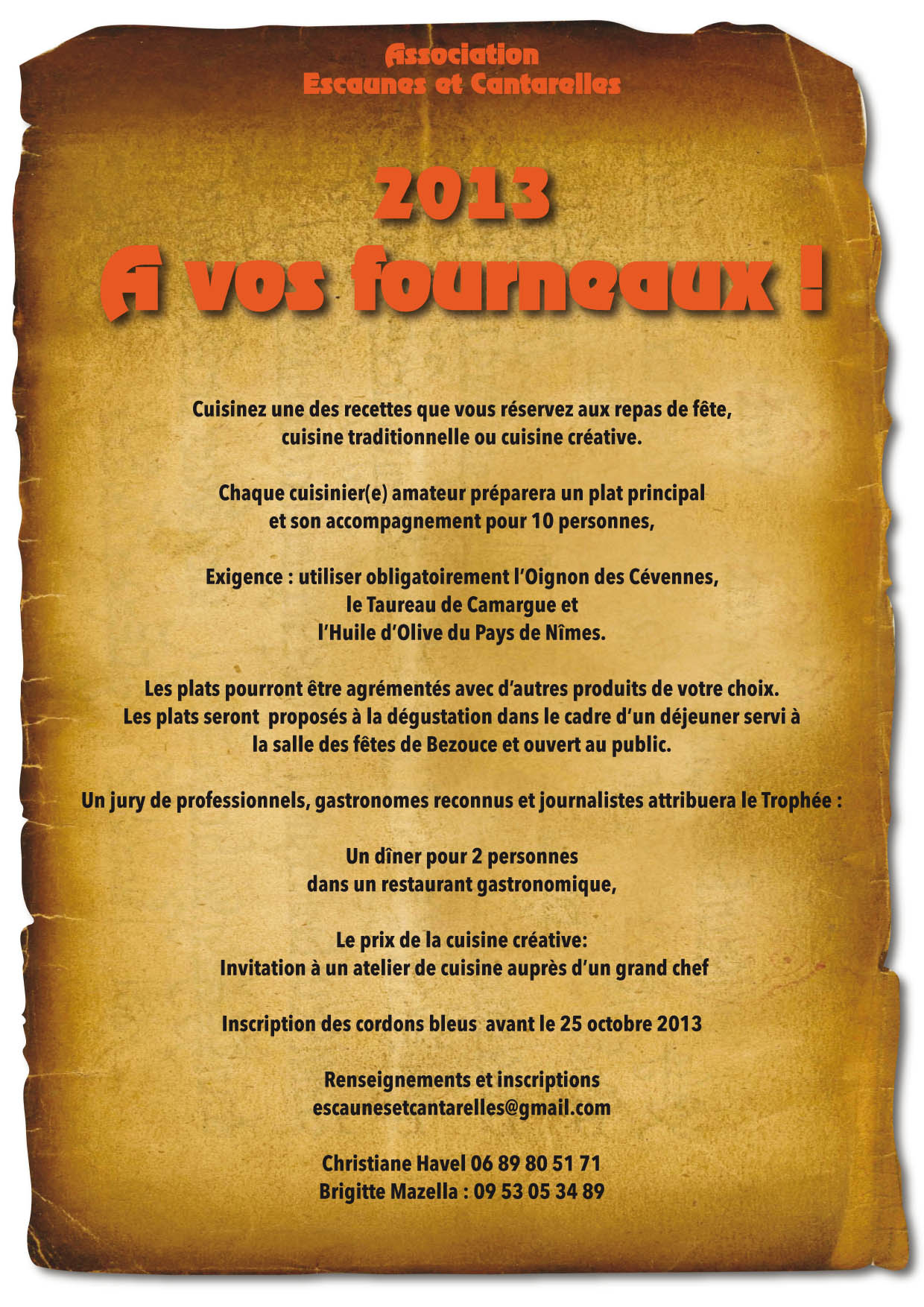 Chaque année l’association Escaunes et Cantarelles fête les talents des cuisiniers et cuisinières amateurs. La Garrigue Gourmande sera présente avec une exposition de plantes sauvage comestibles et en qualité de membre du jury. Règlement |